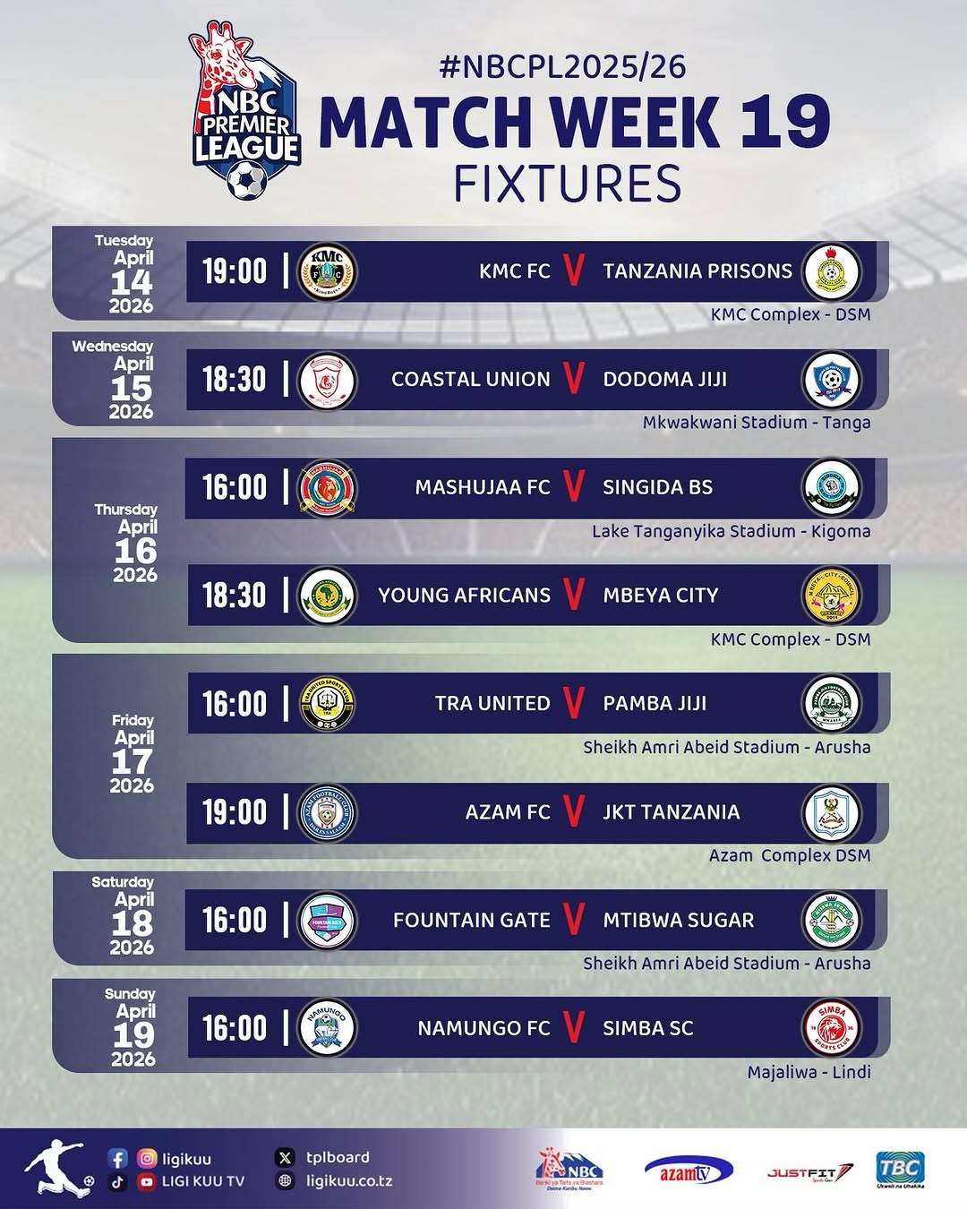 Ligi Kuu ya NBC inazidi kuchanja mbuga ambapo leo mechi za raundi ya 19 zinatarajiwa kupigwa.