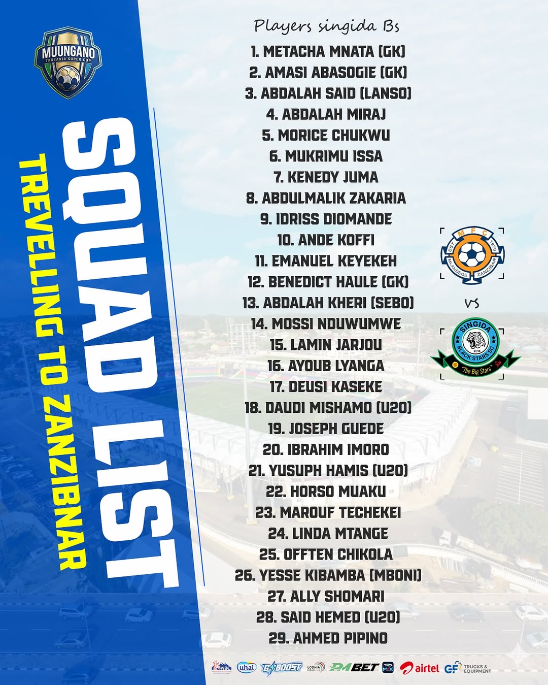 Kikosi cha wachezaji 29 wanaelekea Zanzibar kushiriki michuano hiyo.
